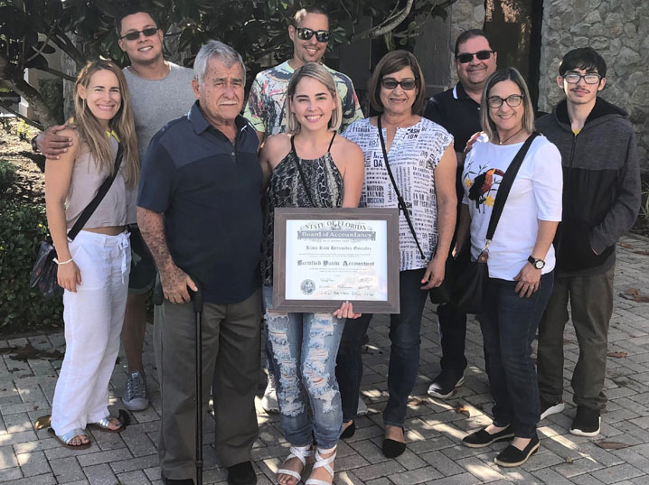 Once in Florida, an accounting firm hired her. With encouragement from her boss, she decided to again pursue accounting credentials. For the next three years, she juggled a demanding full-time job preparing tax returns—all the while studying nights for the battery of four exams she must pass in Florida to become an accountant.
